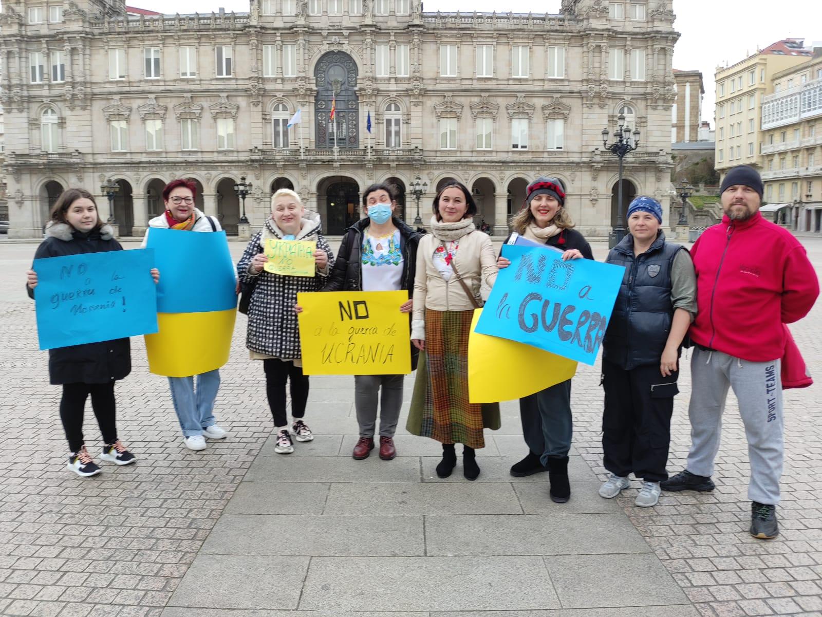 Ucranianos en A Coruña se concentraron en María Pita. Cedida