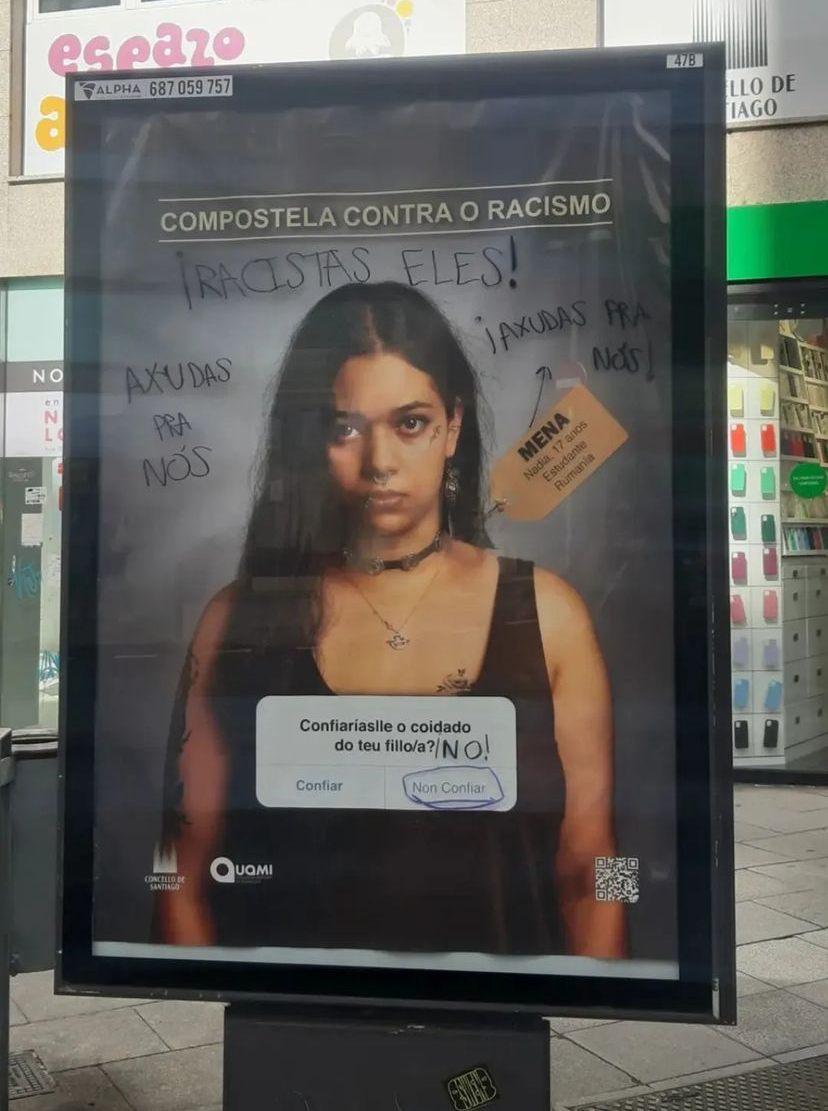 Vandalizan uno de los carteles de la campaña antirracista de Santiago de Compostela