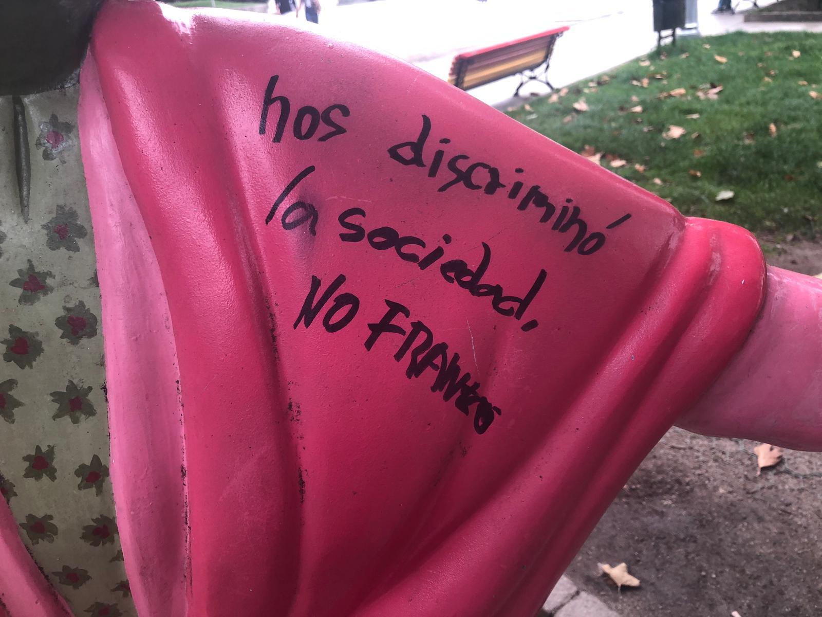 Además de la pintada sobre la estatua también ha aparecido un grafiti en uno de los bancos cercanos en el que se escribieron dos años 1993 y 2003.