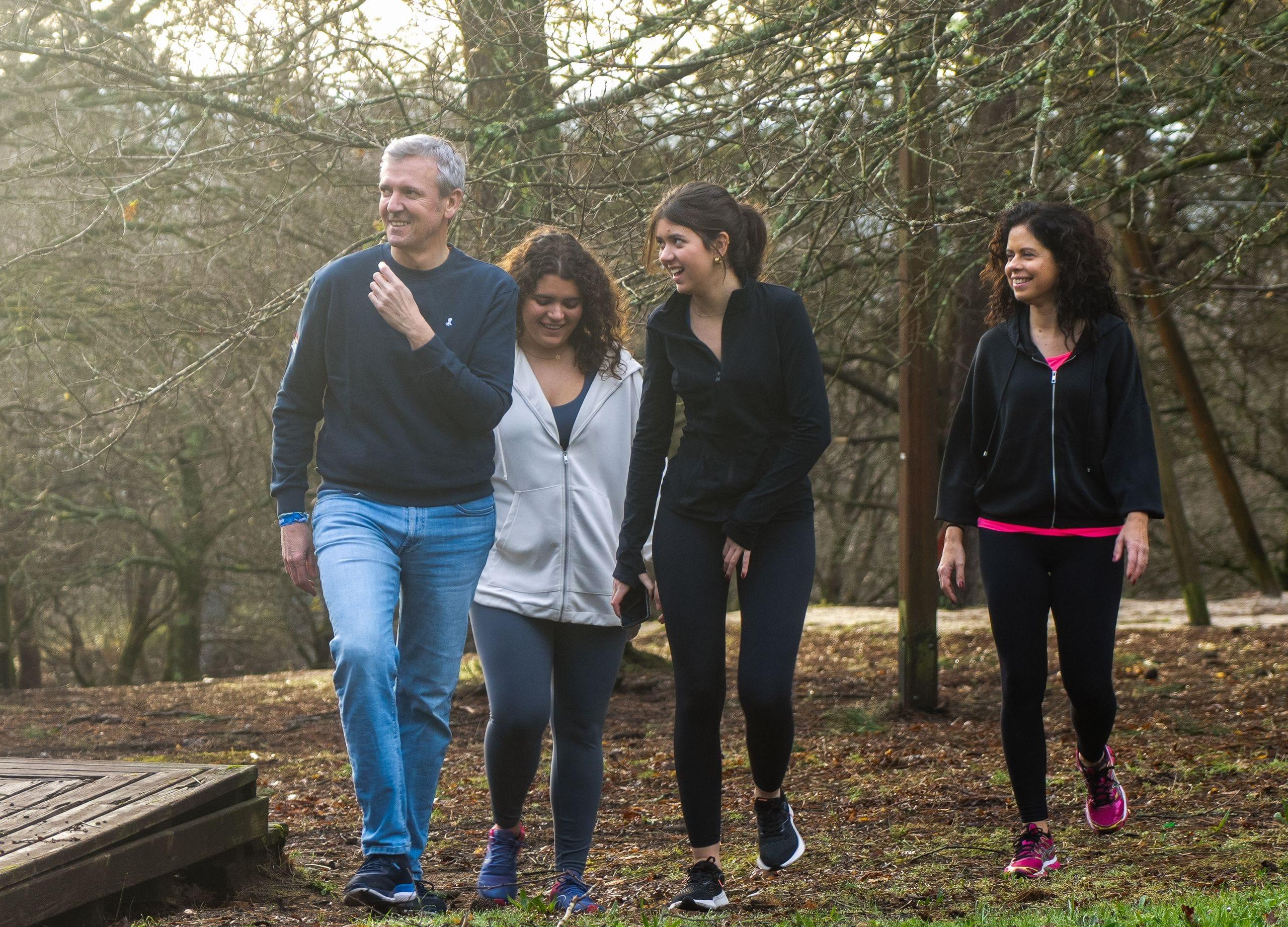 Este sábado de jornada de reflexión, el candidato popular a la presidencia de la Xunta, Alfonso Rueda, ha salido a caminar a primera hora con su mujer Marta y sus hijas Marta y Bea por el Monte Pedroso de Santiago de Compostela, donde también aprovecharon para sentarse a hablar al aire libre antes de la cita con las urnas de los gallegos mañana, domingo 18 de febrero.