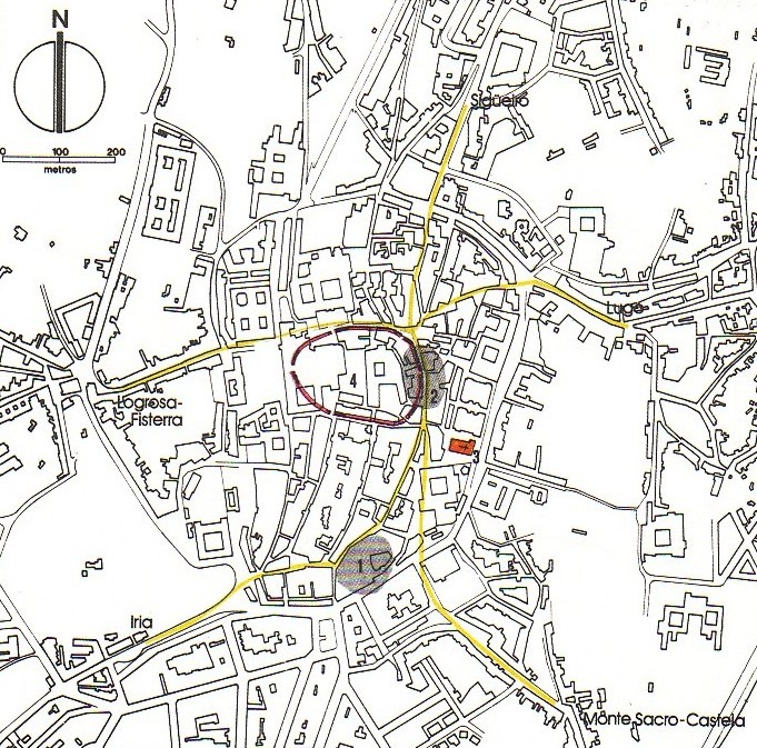 No fue hasta cien años más tarde, en el siglo XI, cuando el obispo Cresconio edificó una segunda muralla que, con su propio trazado, con un contorno de dos kilómetros y un espacio interior de alrededor de treinta hectáreas, trazó los límites del actual Casco Histórico de la capital gallega.