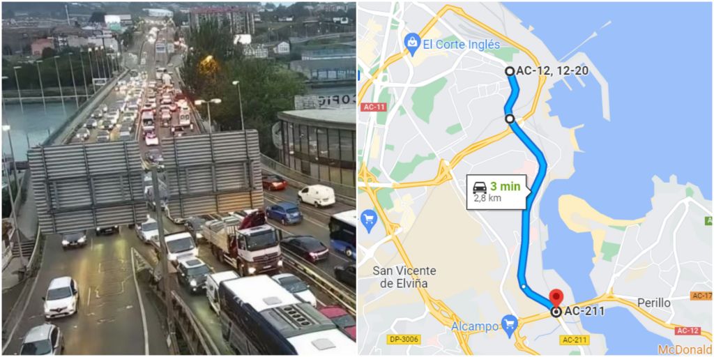 Tiene una longitud de 2,8 kilómetros, nace entre las avenidas de Oza y del Ejército, en la rotonda ubicada en la confluencia entre ambas en el barrio de Os Castros, y termina en la glorieta de A Pasaxe. Por este tramo discurre la AC-12 y también son una imagen habitual los atascos, sobre todo a la altura del puente y en los tramos previos. A través de esta arteria se puede acceder a diferentes centros sanitarios coruñeses, como el CHUAC, el San Rafael o el Materno Infantil Teresa Herrera.