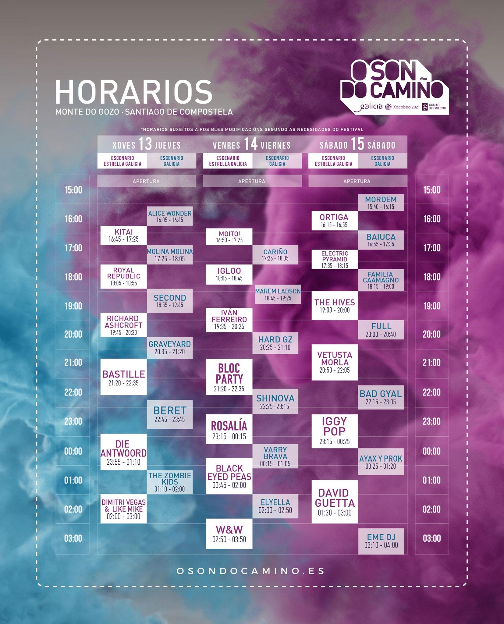 O Son do Camiño: horarios finales de todos los conciertos Facebook: Rosalía