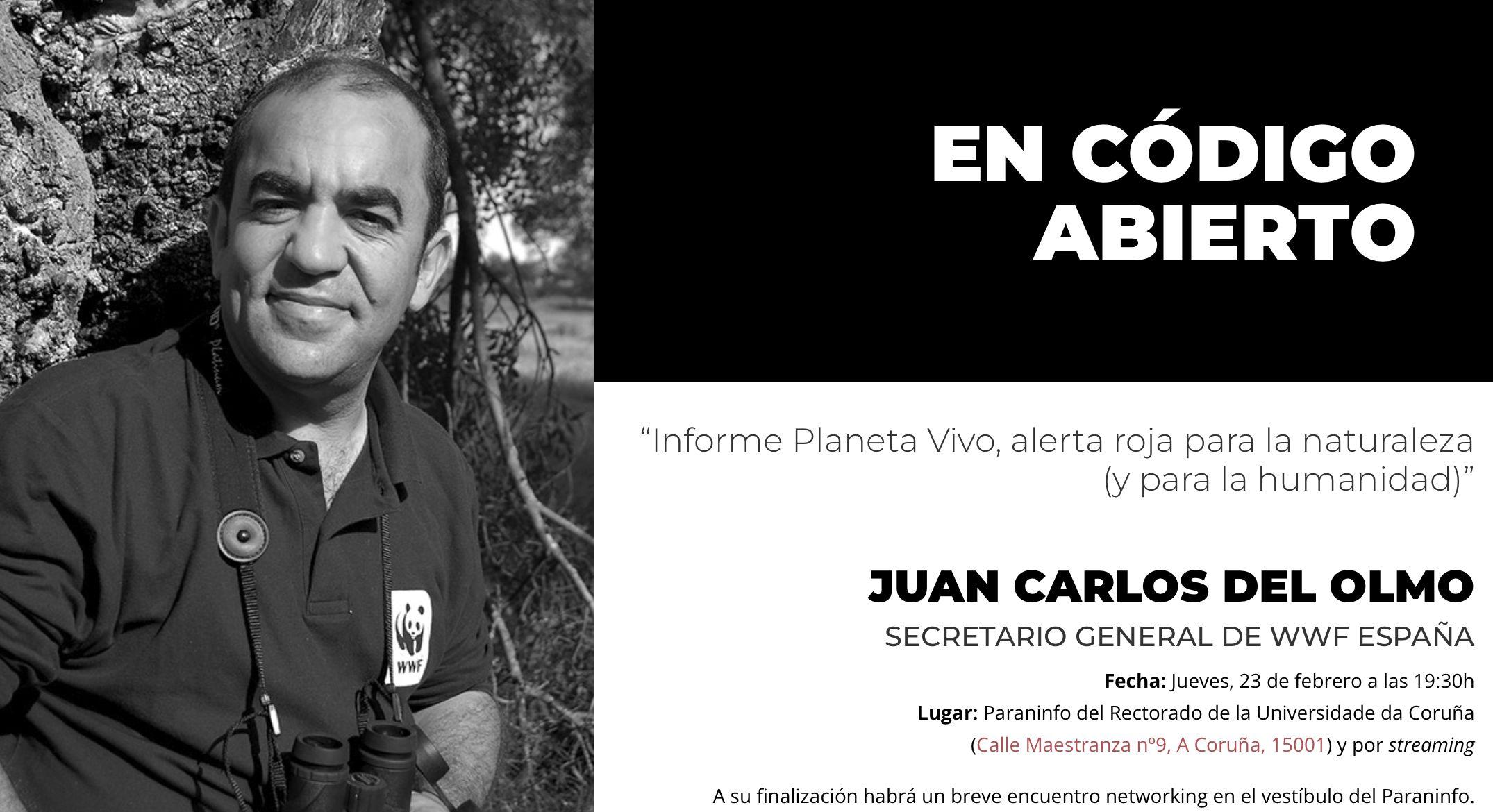 El paraninfo de la Universidad de A Coruña acogerá desde este jueves una nueva edición del ciclo de conferencias ‘En Código Abierto’ organizado por la cátedra Inditex-UDC de Sostenibilidad. En esta primera sesión intervendrá Juan Carlos del Olmo, secretario general de WWF España, una de las mayores organizaciones independientes dedicadas a la defensa del medio ambiente. El experto explicará la "doble emergencia mundial climática y de biodiversidad" en su charla Informe Planeta Vivo, alerta roja para la naturaleza (y para la humanidad).