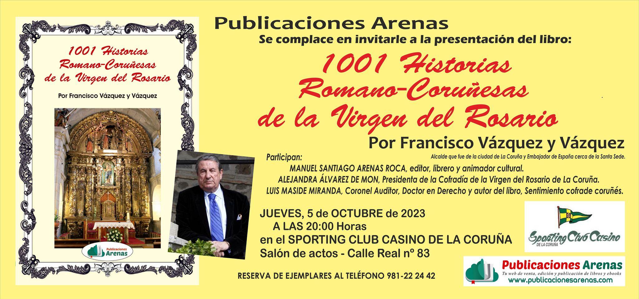 Franscisco Vázquez, el que fue alcalde de A Coruña entre 1983 y 2006, publica nuevo libro. Se titula ‘1001 historias romano-coruñesas de la Virgen del Rosario", que presentará el 5 de octubre a las 20:00 horas en el Sporting Club Casino de A Coruña en un acto organizado por publicaciones Arenas.