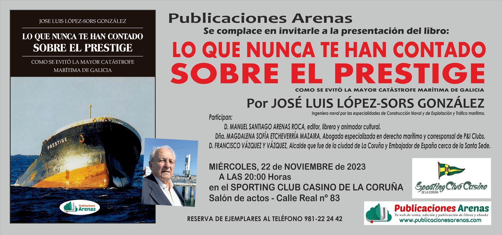 El título es ‘Lo que nunca te han contado sobre el Prestige’ y trata, según figura en la portada, de cómo bajo el punto de vista de López-Sors "se evitó la mayor catástrofe marítima de Galicia". Un testimonio especialmente interesante dadas las dudas que aún existen a día de hoy sobre los hechos y las sombras sobre el proceso judicial, cuya resolución en 2013 determinó que solo el capitán griego Mangouras debía ser condenado por desobediencia civil grave a la autoridad.