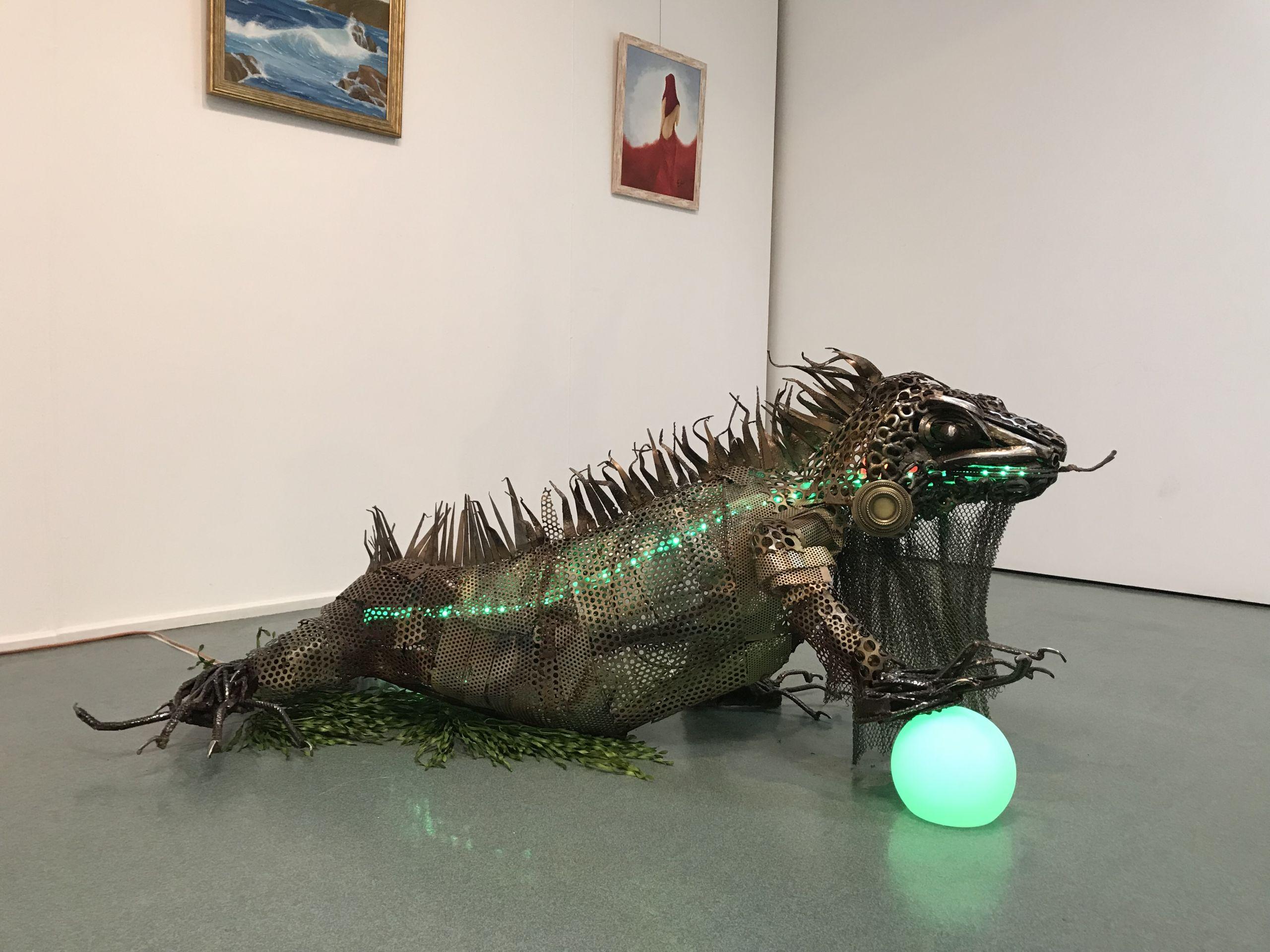 A la pintura y escultura en cobre, latón e incluso hueso natural, se han ido uniendo nuevas disciplinas como la poesía de Xurxo Gago o la música de Henri, Javi Moreno, Iván SF y Obolo de Caronte, que completan la visita a la sala de la Autoridad Portuaria en un ambiente decorado en participación de la floristería local Bambú.