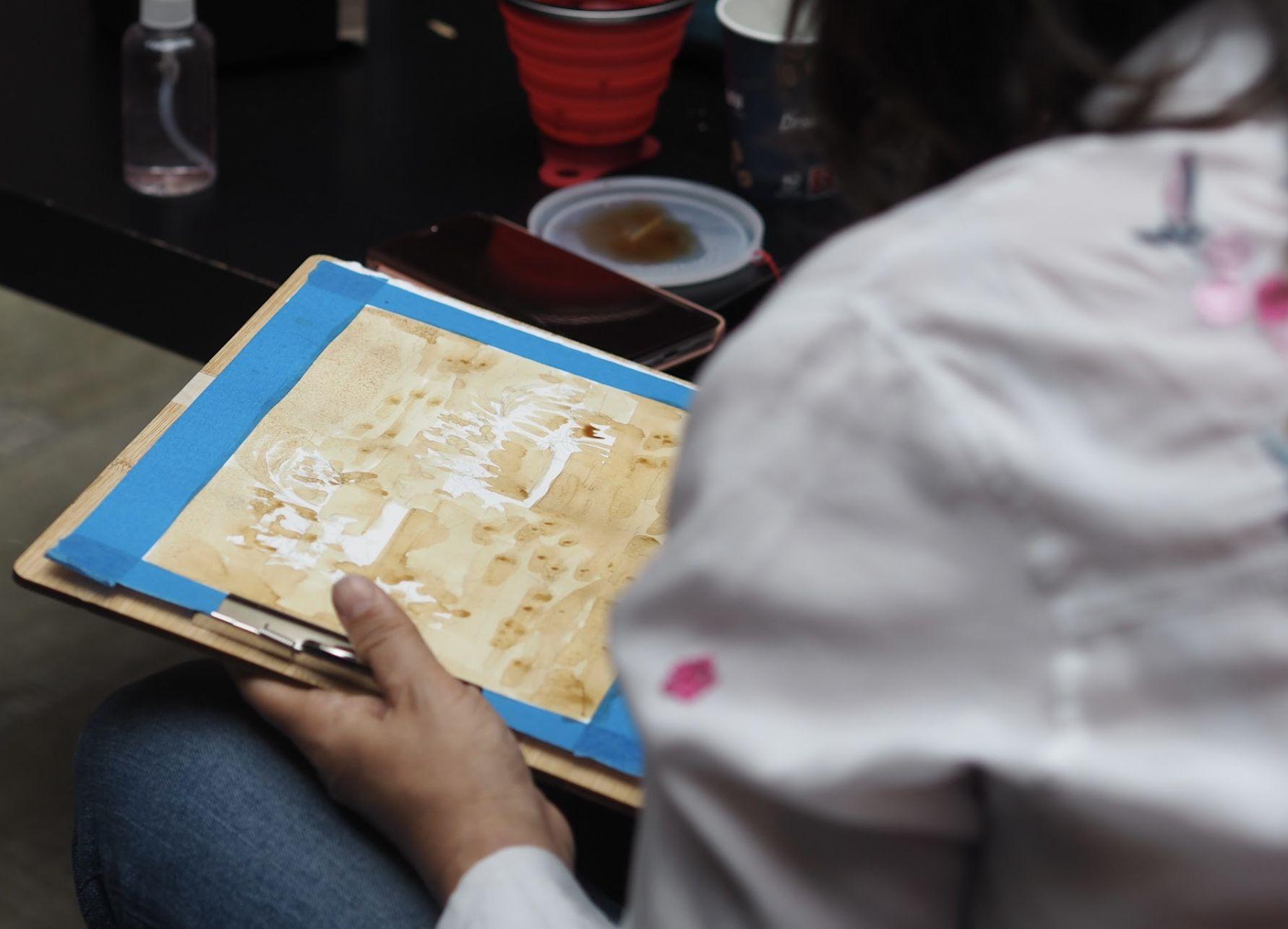 Urban sketchers en el Airas Nunes practicando la técnica del coffee painting.
