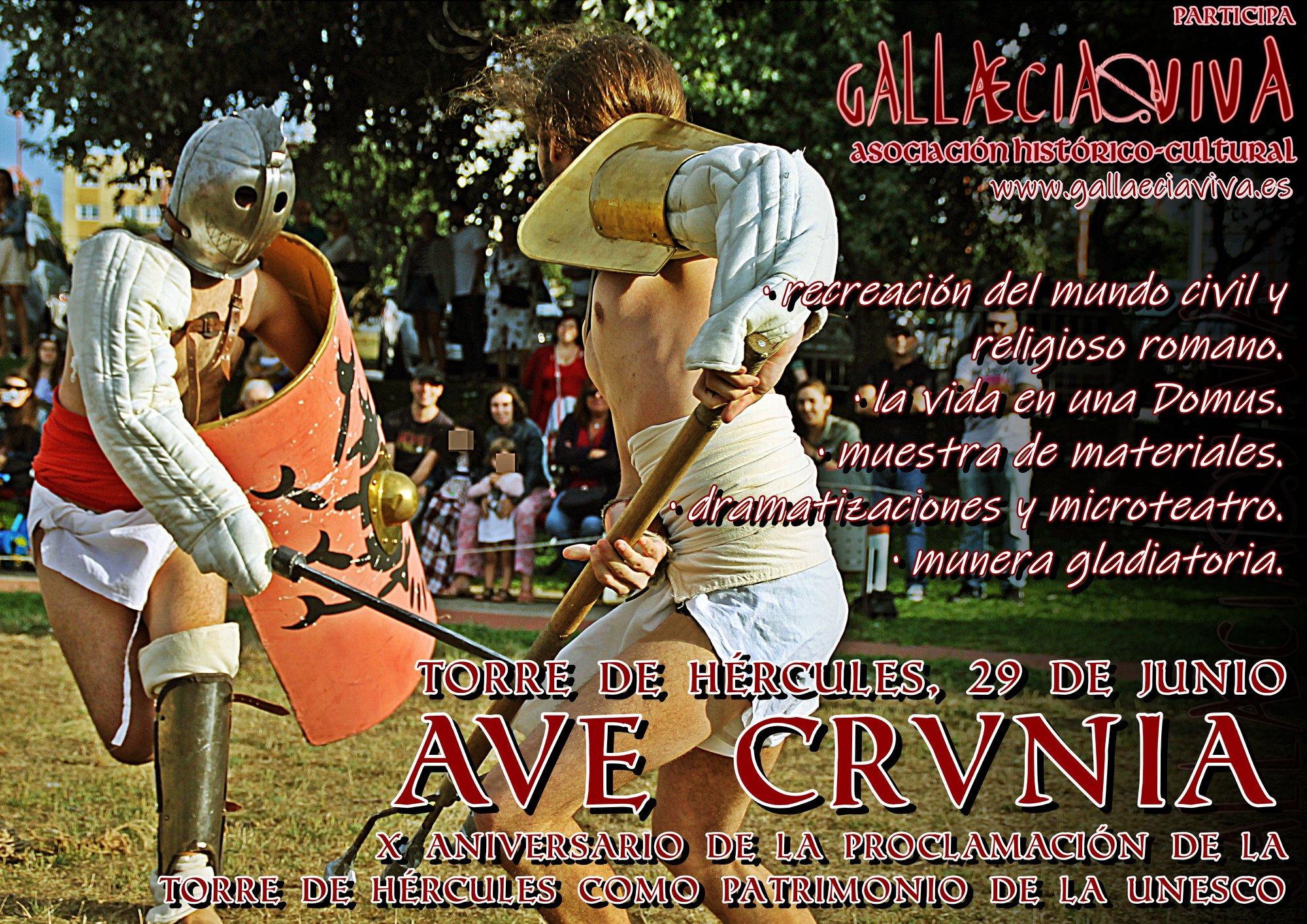 Las recreaciones históricas Ave Crunia tomarán el faro el sábado 29 de junio, a cargo de la asociación Gallaecia Viva, en las que se incluye una escuela de pequeños legionarios y gladiadores, además de distintas charlas y dramatizaciones sobre la vida civil y militar de la antigua Roma.