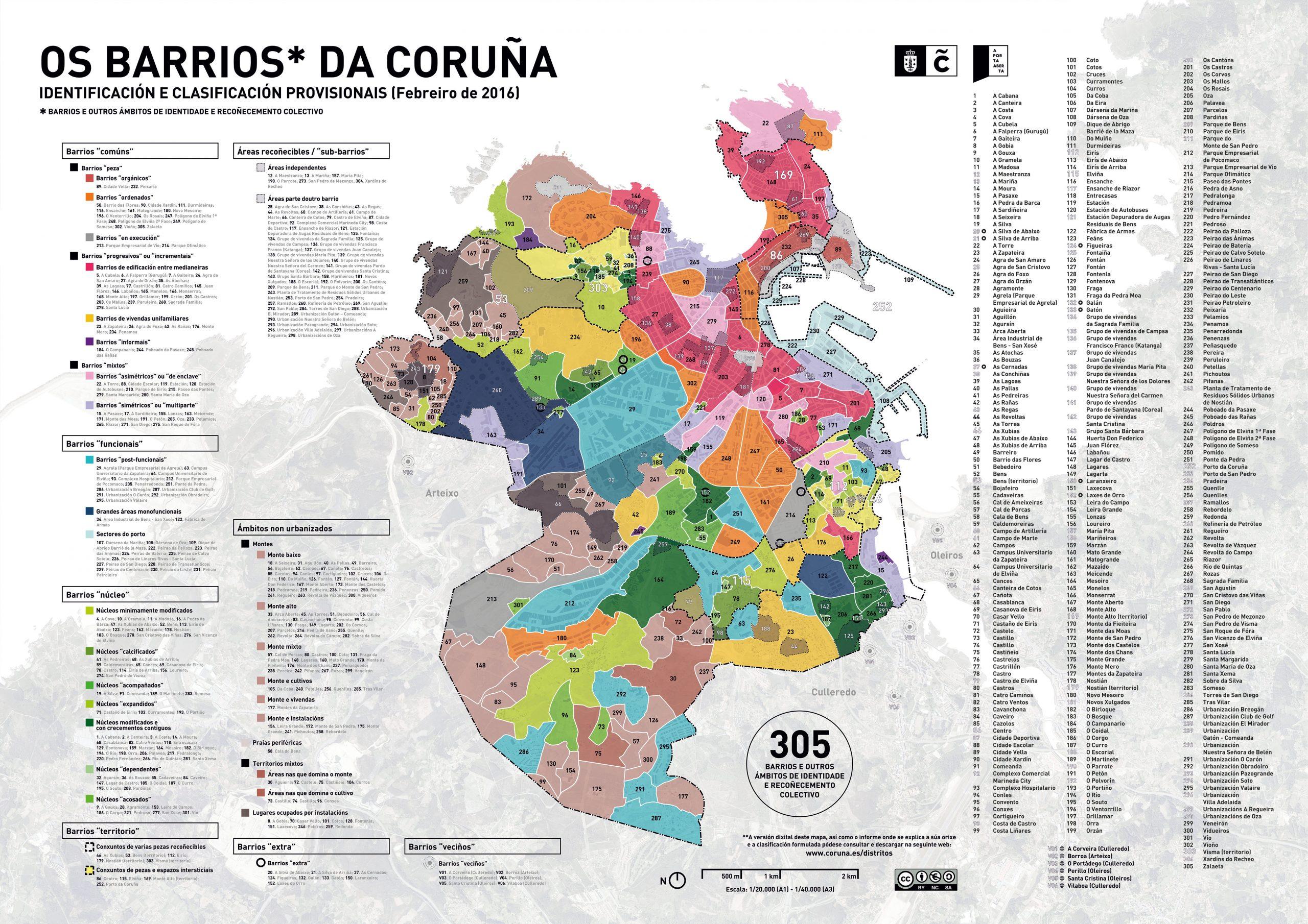 En A Coruña, con casi cincuenta barrios, estos constituyen un microcosmos como refleja la publicación ‘A Cidade dos Barrios’. En este magnífico estudio de la ciudad, se recogen numerosos datos que reflejan el ‘estado de ánimo’ de la misma, una percepción basada en el testimonio de sus propios habitantes. Entre la gran cantidad de información y el caleidoscopio de miradas que analizan la ciudad, hay un pequeño detalle que resulta muy interesante y es la diferencia que existe entre la identificación que los ciudadanos hacen del límite de su barrio y el que se hace de forma oficial. Pequeños matices, pero matices cargados a veces de una memoria subliminal, desconocida o no por su habitante. Y es que quizás el barrio resulte hoy en día una unidad compacta reconocible y un órgano muy activo del organismo urbano, pero hay miles de capas que subyacen bajo él. Una de esas capas, tan sólo una de ellas es la red que componen los antiguos municipios que formaron la ciudad o que fueron absorbidos por ella.