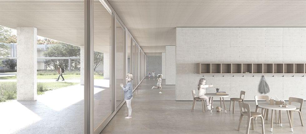 Destaca la disposición de las aulas de esta última etapa educativa (Primaria), que se integran en torno a un espacio abierto y compartido, en el que no existen los pasillos, por lo que en todos los rincones del colegio se podrá ver a alumnos aprendiendo de forma práctica y efectiva.