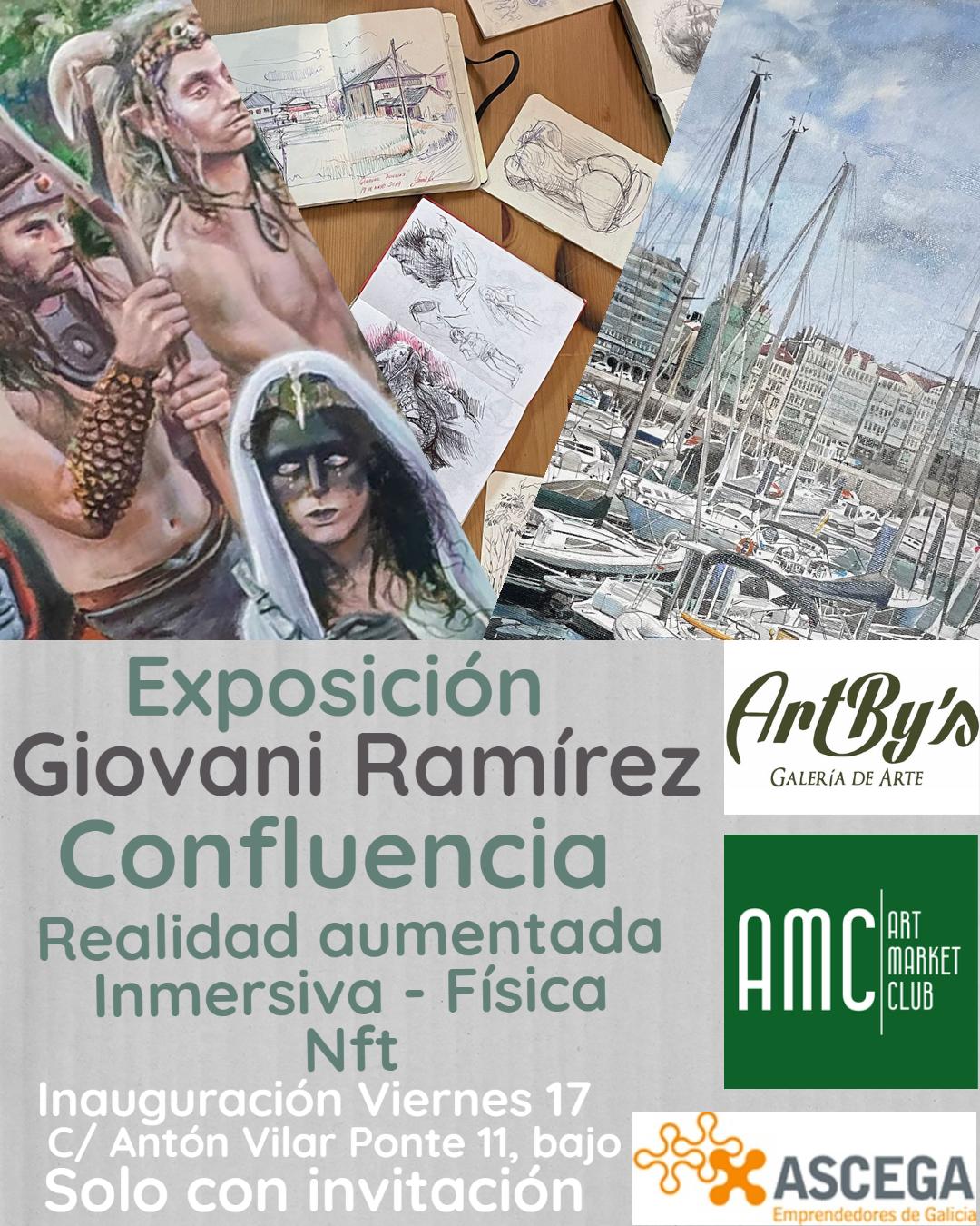 Confluencia, de Giovani Ramírez, es una muestra de 17 obras presentadas en tres formatos diferentes: en Lienzo, en una impresión gráfica y en un NFT. Esta es la primera vez que en España una galería de arte presenta una exposición en realidad aumentada, un nuevo sistema con el que será posible disfrutar de la obra desde casa con la ayuda de un teléfono móvil siguiendo el enlace que figura en la web.