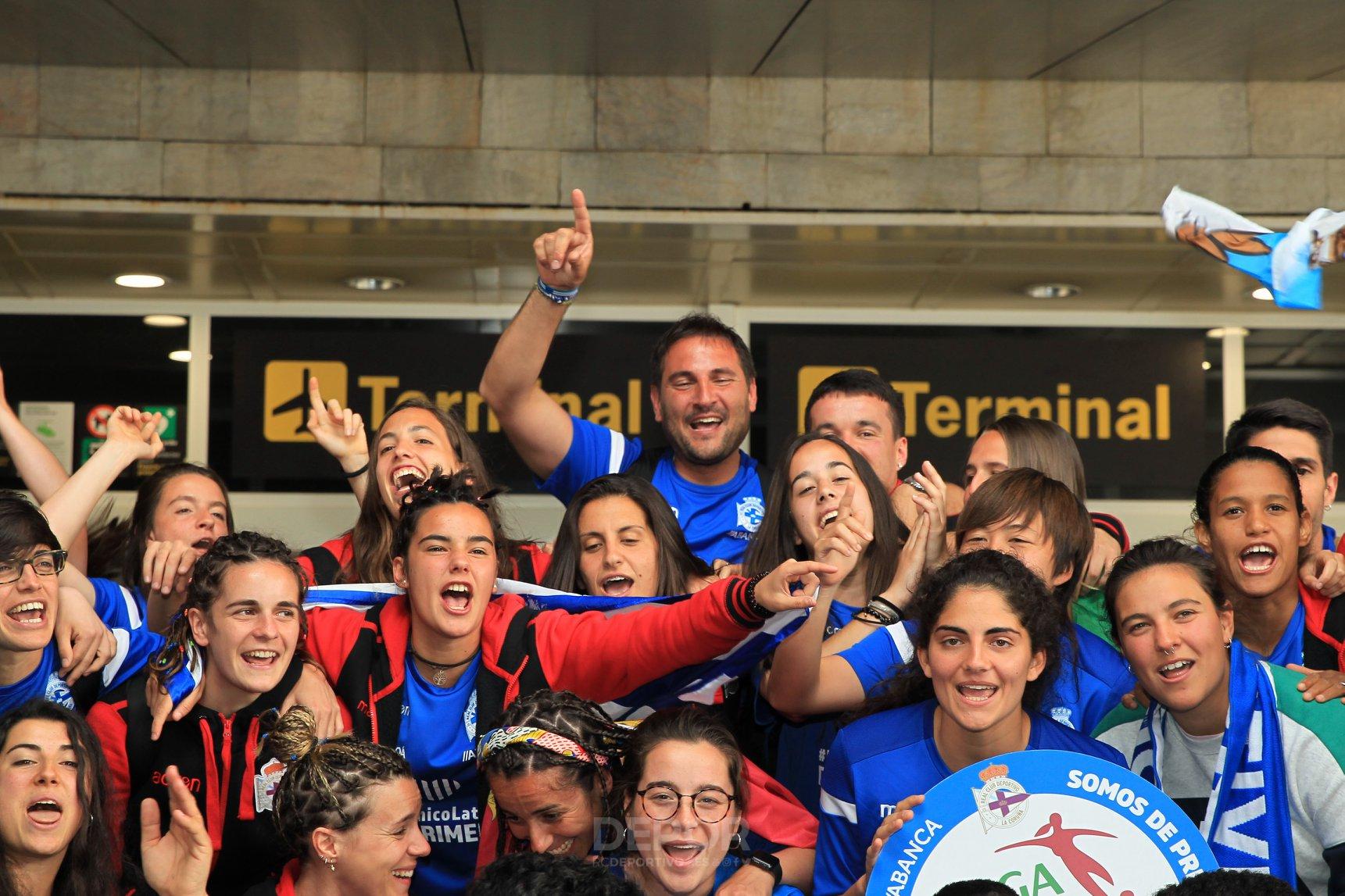 Este medio día las jugadoras del Dépor Abanca aterrizaban en Alvedro después de lograr su merecido ascenso a la primera división del fútbol femenino.