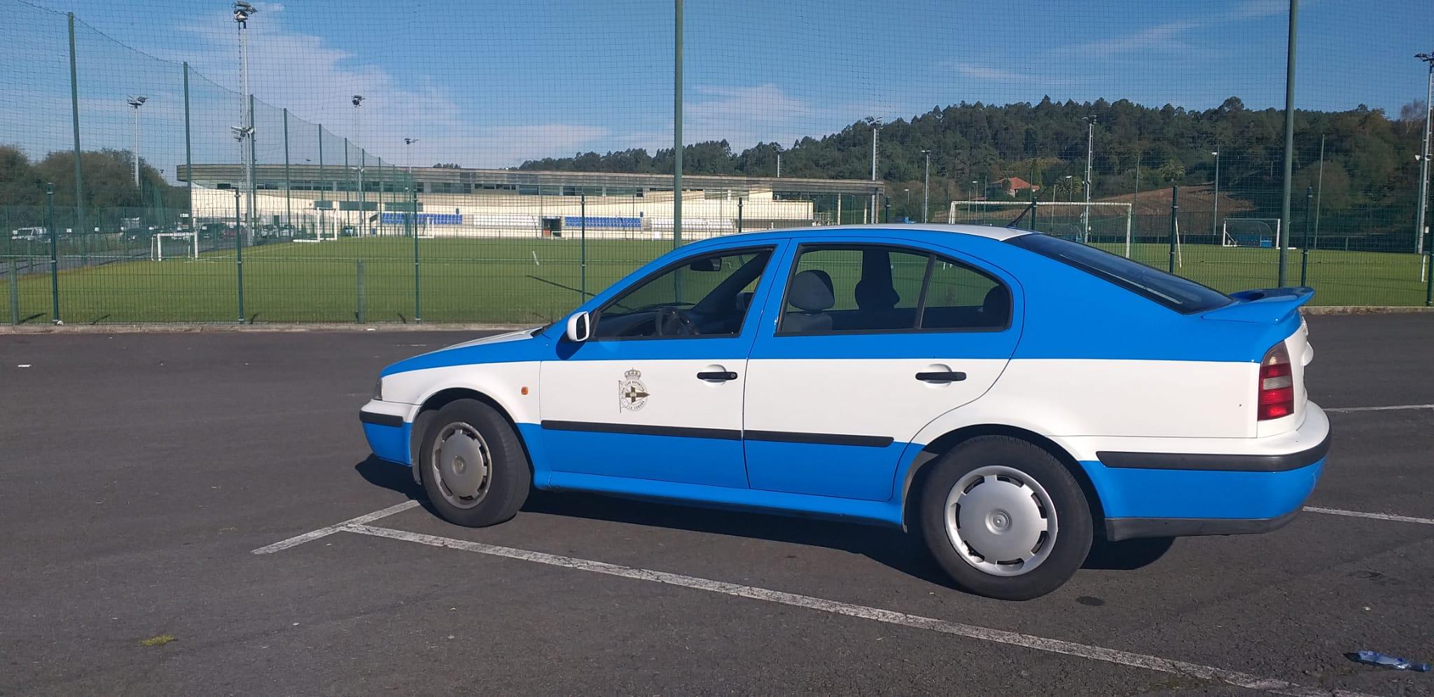 Un coche blanquiazul, el mejor aliado del Deportivo en su camino a Segunda División