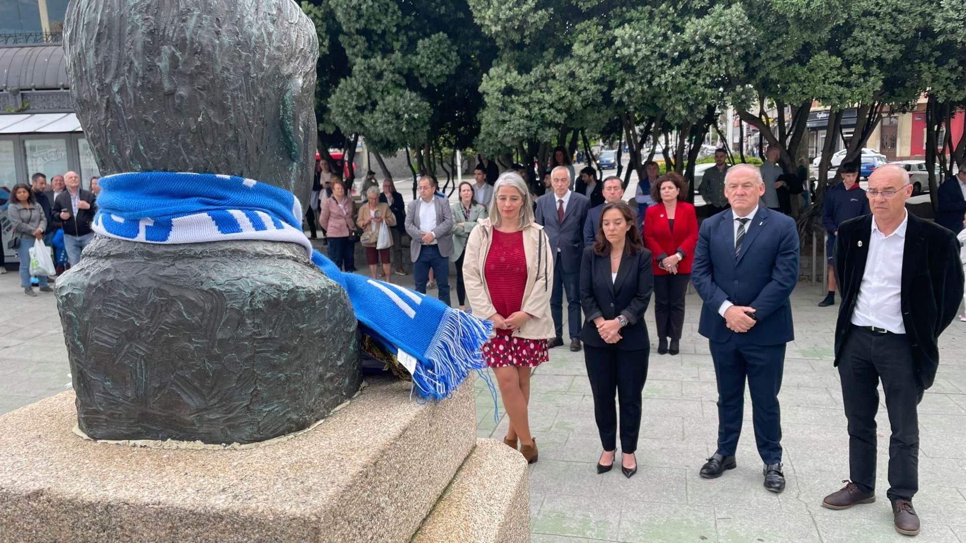 La corporación municipal de A Coruña se ha reunido este viernes 5 de mayo en el monumento de Arsenio Iglesias para rendir homenaje al entrenador que llevó al Deportivo a la gloria. Inés Rey y el resto de portavoces del Concello han realizado una ofrenda floral sobre las 20:00 horas para dar un último adiós a Arsenio Iglesias, que falleció hoy a los 92 años.