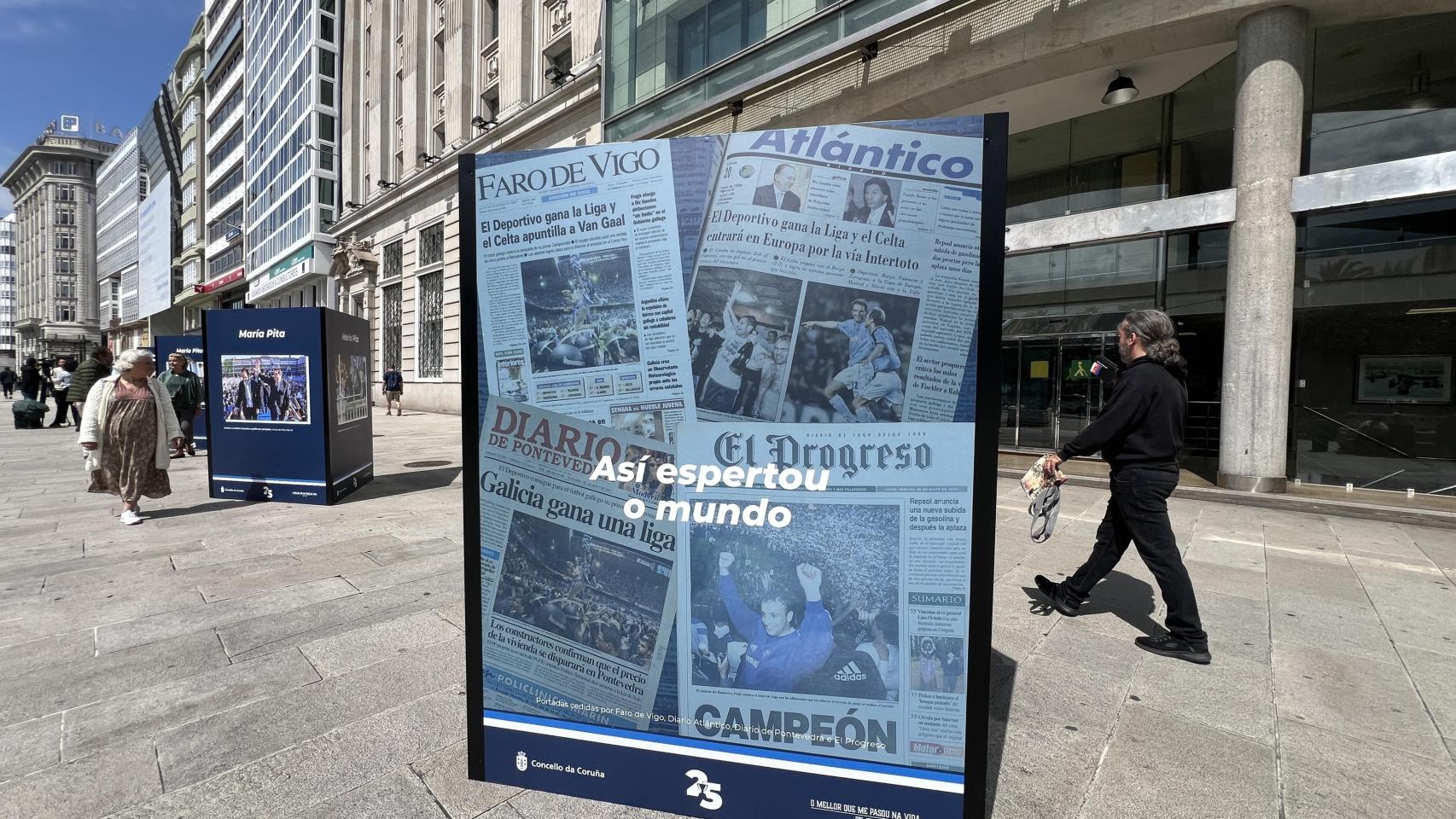 Exposición de fotos del 25º aniversario del título de liga del Dépor en Obelisco.