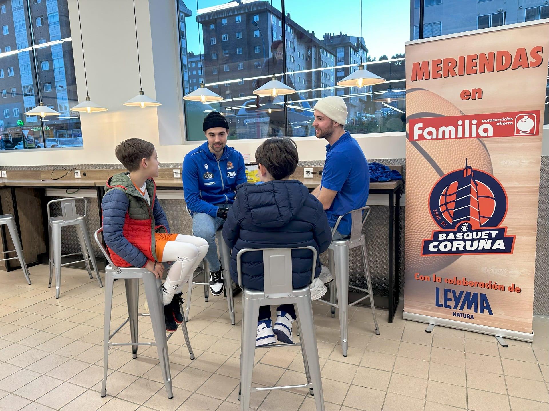El Básquet Coruña y Vegalsa-Eroski, a través de su red de supermercados Autoservicios Familia, pusieron en marcha la actividad ‘Meriendas en Familia’. Se trata de una divertida propuesta que permite a los amantes del baloncesto merendar con algunos de los jugadores del Básquet. La primera de las actividades tuvo lugar el pasado mes de diciembre; la segunda el viernes 16 de febrero; y la tercera y última está cerca.