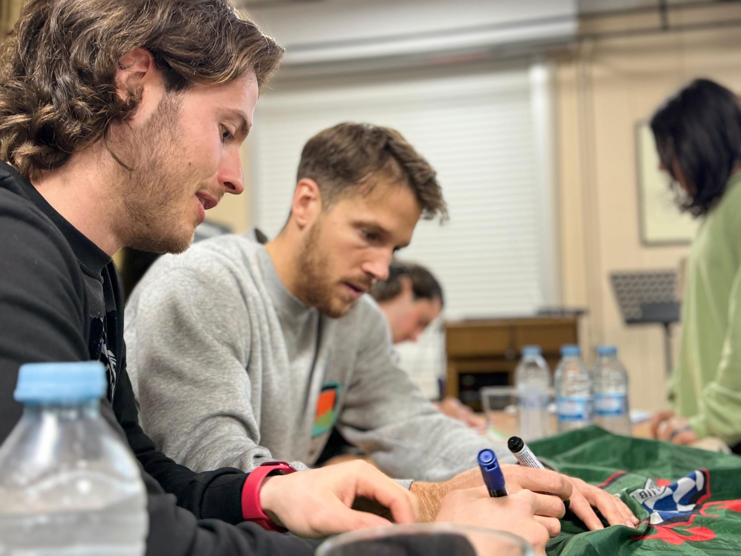 Esta vez fueron Emilio Bernard, Sergio Cubero y Josep Señé quienes compartieron un rato conversando con el profesorado y los escolares y aprovecharon su estancia allí para firmar camisetas
