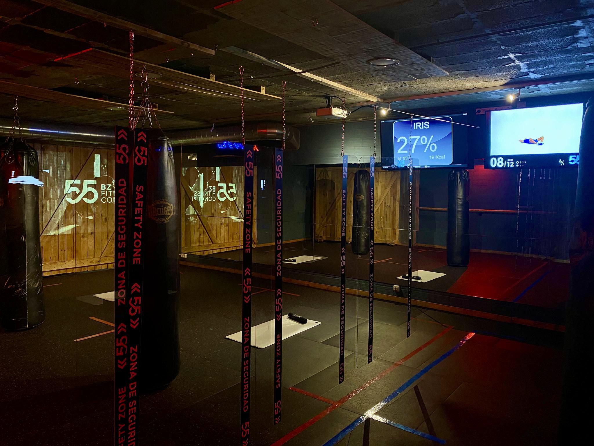 BZ55 combina clases presenciales y online. Las clases están dirigidas por un entrenador personal que adapta el tipo de ejercicio a cada uno, y también cuentan con un sistema audiovisual para poder seguir la clase desde las pantallas. Los entrenamientos se pueden seguir desde casa en directo gracias a esas pantallas y a la app del centro.