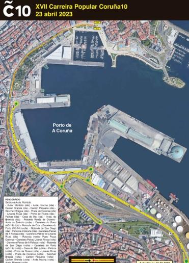 La Coruña10 arrancará a las 10:00 horas desde Puerta Real y pasará por los Cantones, Linares Rivas y los terrenos interiores del Puerto coruñés hasta regresar a La Marina.