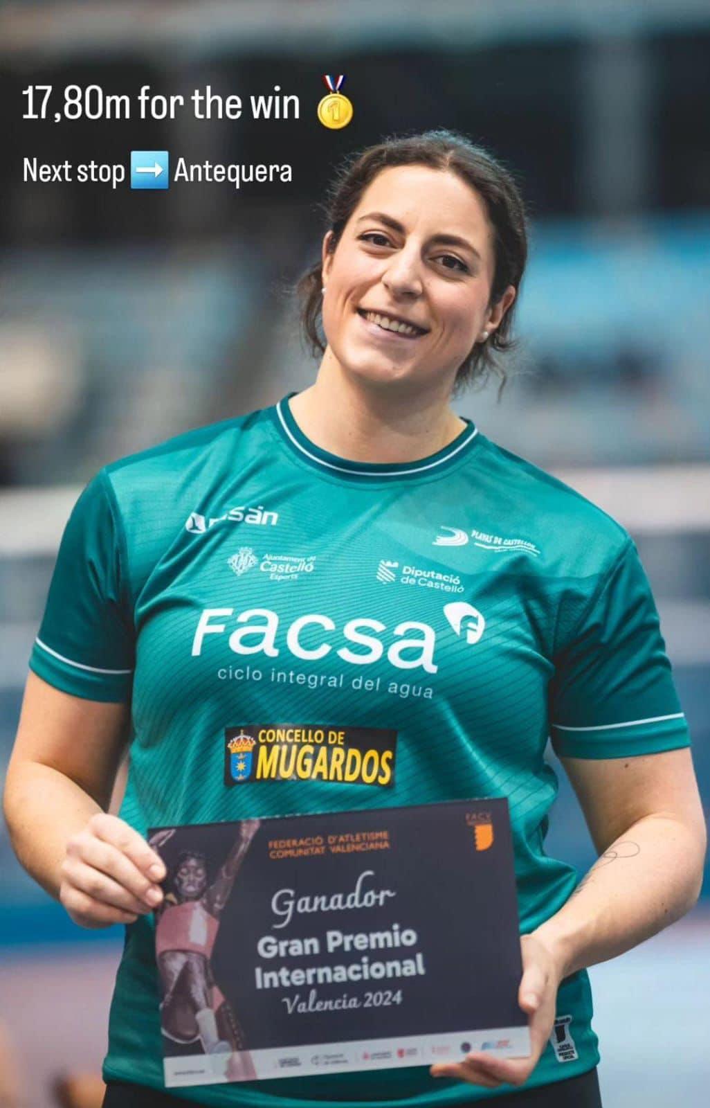 En esta cita, la mugardesa obtuvo la victoria en su categoría con una marca de 17,80 en su primer intento. Compitió con otras seis deportistas, dos de Gran Bretaña y el resto españolas.
