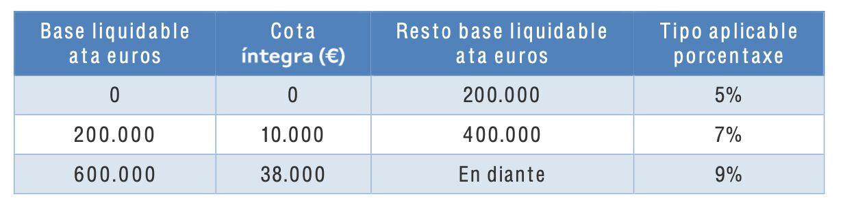 En caso de que el dinero no se vaya a destinar a ninguno de estos supuestos no se podrá acceder a la reducción del 95%, y se aplicarán las siguientes tarifas (siempre que se formalice la donación en escritura pública):