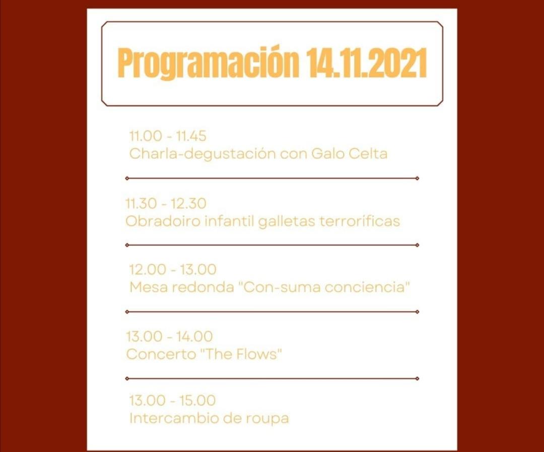 Este encuentro, además de los puestos del mercado, acogerá mesas redondas y degustaciones de productos. Así, a las 11:00 horas habrá una degustación de productos con David Sueiro, de Galo Celta. A las 11:30 horas habrá un taller de galletas para los más pequeños. A las 12:00 horas tendrá lugar una mesa redonda moderada por María Nieto que llevará el título de ‘Consuma conciencia’ y cuyo objetivo será poner encima de la mesa conceptos muy de actualidad en el sector alimenticio. Contará con la participación de Daniel, de Revolución de los Graneles; Sonia, de