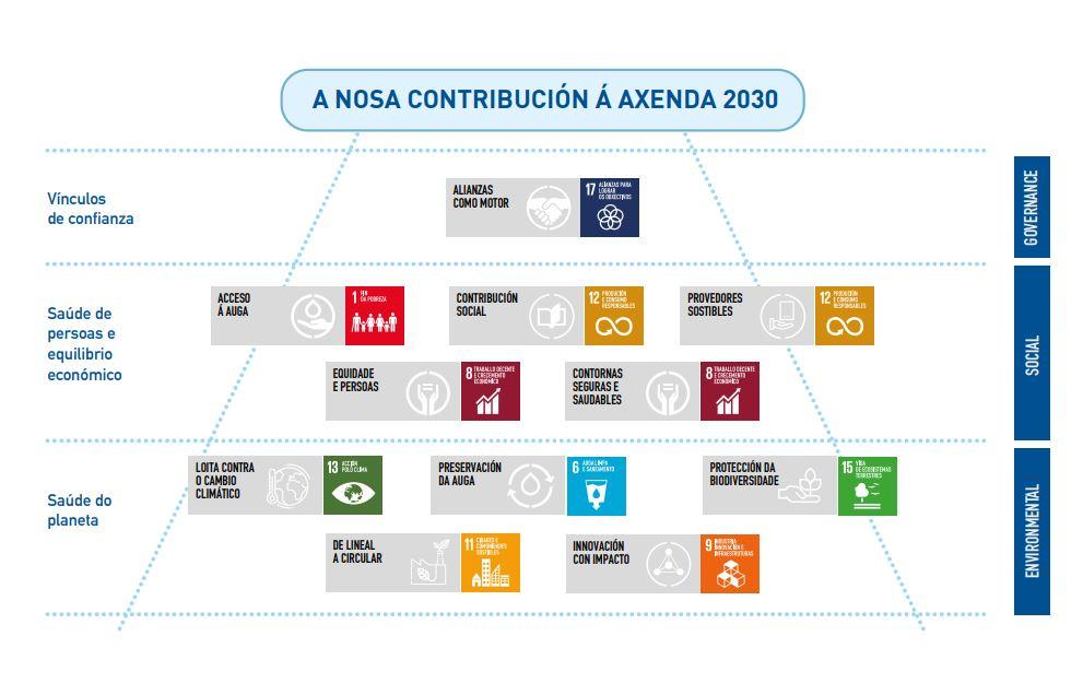 En este contexto de cambio, tenemos que plantearnos qué podemos hacer y cómo lo vamos a abordar. Viaqua, empresa gallega con más de 50 años de experiencia en el sector del agua, reforzó sus compromisos como compañía, los cuales están alineados con los criterios ESG (Environmental, Social, Governance) y por tanto con la Agenda 2030 de la ONU. De esta forma, la empresa gallega aborda los retos globales adoptando medidas específicas a las problemáticas locales, en alianza con las universidades, administraciones públicas y otras entidades, proponiendo soluciones que contribuyan a la descarbonización de Galicia.