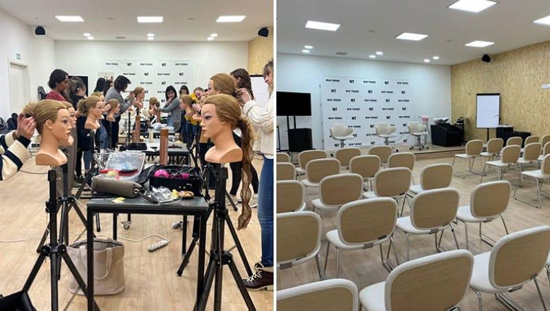 Además de este espacio de venta, habilitaron una moderna sala de formación completamente equipada con todos los accesorios y mobiliario que se necesitan para trabajar en cualquier salón de peluquería.En ella, especialistas del sector ofrecen de manera periódica formaciones de temática diversa: desde corte, color, mechas hasta creación de uñas (de gel, de acrílico…), pasando por formaciones relativas a depilación, entre otras muchas materias.