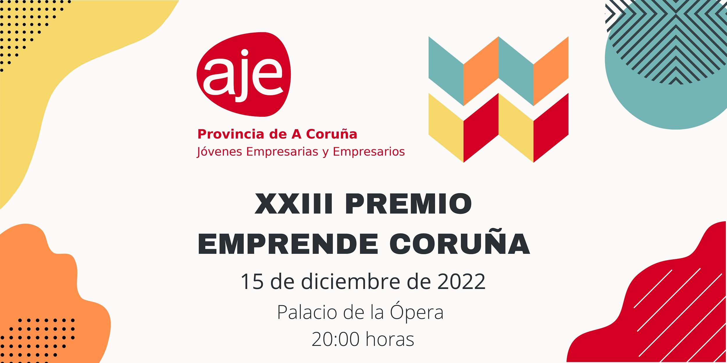 La vigésimo tercera edición del Premio Emprende se celebra mañana jueves desde las 20:00 horas en el Palacio de la Ópera de A Coruña. AJE Provincia de A Coruña tiene, desde su fundación, el objetivo de fomentar las vocaciones empresariales y la difusión de la cultura emprendedora entre los jóvenes y repartirá este 15 de diciembre premios valorados en 27.300 euros.