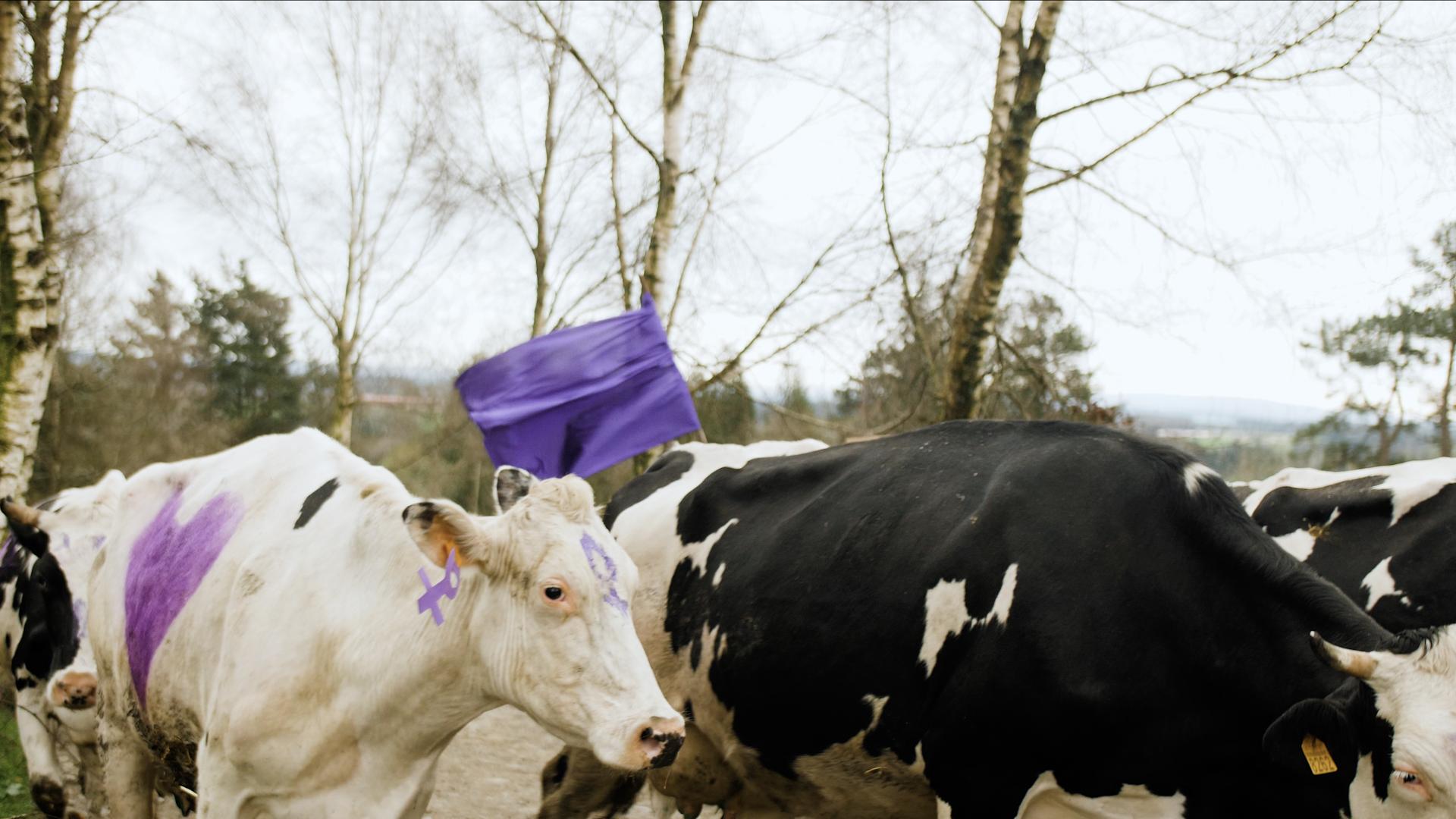 Las vacas de la Casa Grande de Xanceda (A Coruña) se manifiestan por el Día de la Mujer