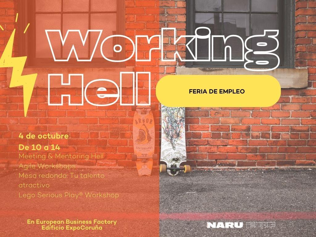 Working Hell es la Feria de empleo que proponen Fundación Naru y European Business Factory, que se celebrará el 4 de octubre en European Business Factory Coruña. A través de este evento buscan brindar un lugar de encuentro entre empresas y personas. Podrán, además, participar en tallares para su empleabilidad a través de innovadoras metodologías ágiles y Lego Serious Play®