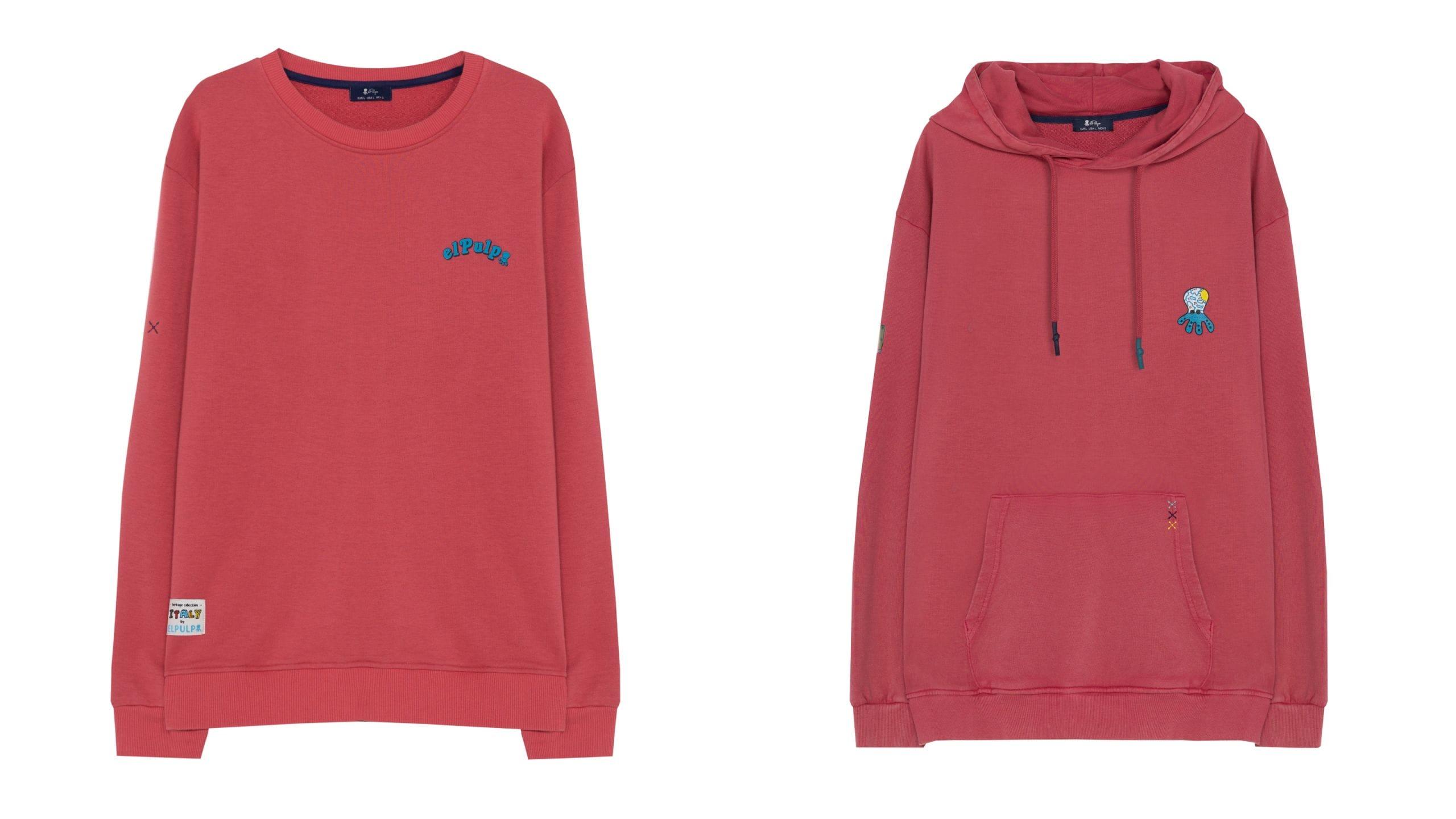 La marca nacida en A Coruña traslada su espíritu atlántico a la gama de los rojos con prendas en algodón 100%orgánico y con el característico logo de la marca que aporta un toque diferencial.