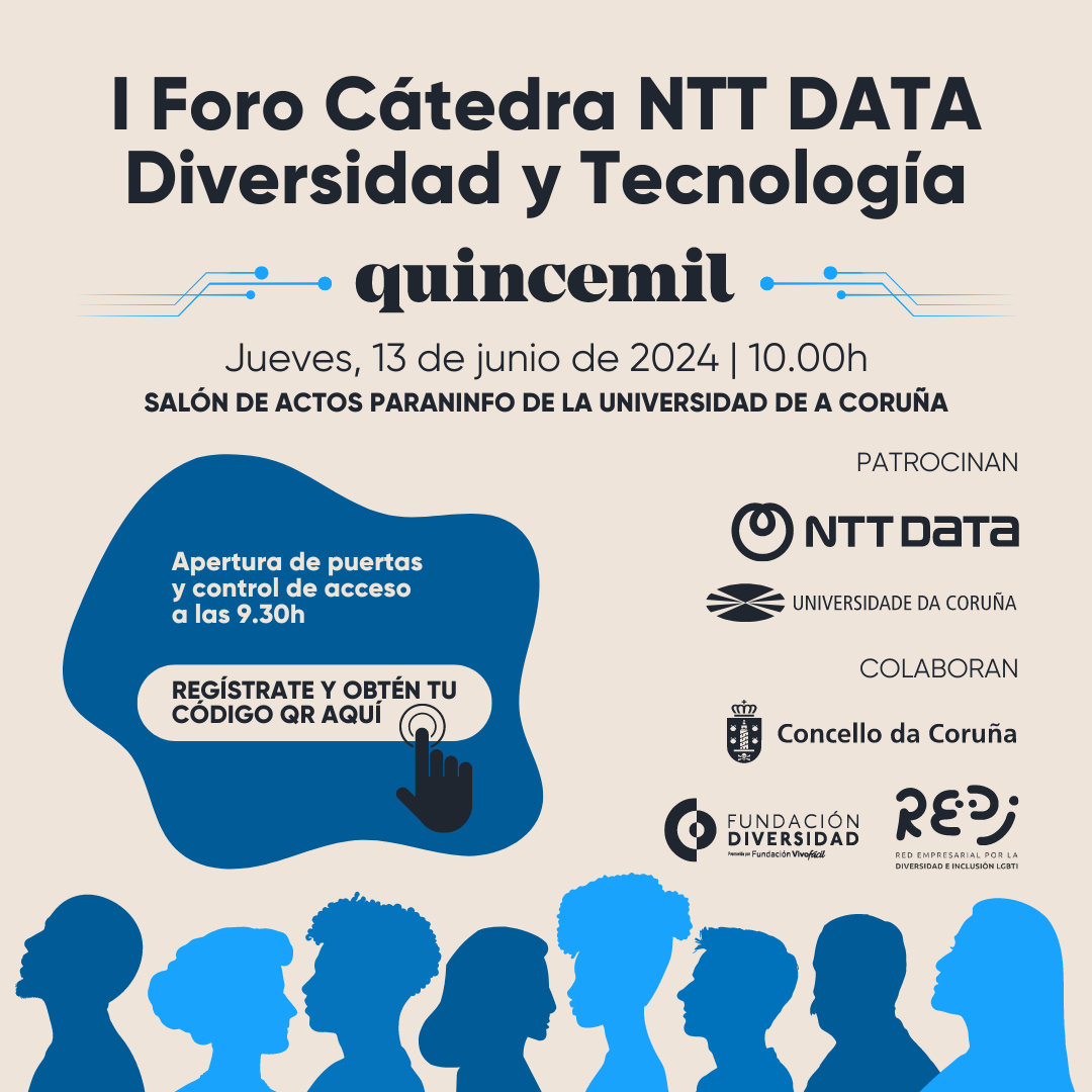 A Coruña acogerá el próximo jueves 13 de junio el I Foro Cátedra NTT Data Diversidad y Tecnología. Organizado por Quincemil y patrocinado por NTT Data y la Cátedra UDC, el evento comenzará a las 09:30 horas con la apertura de puertas en el salón de actos del Paraninfo de la Universidade da Coruña.