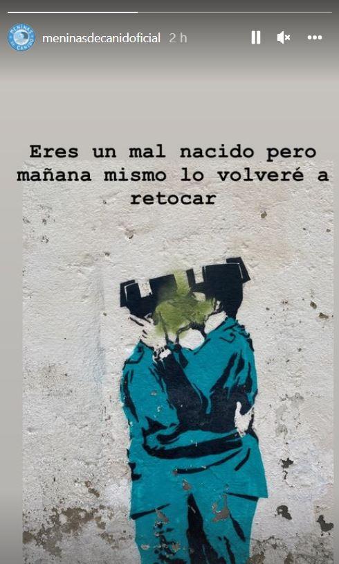 El icónico grafiti que representa el apasionado beso de dos Guardias Civiles en una fachada del barrio ferrolano de Canido ha amanecido vandalizado. Así se ha confirmado a través de la cuenta oficial de instagram de las populares Meninas de Canido acompañado de una imagen en la que se muestra que los rostros de los hombres aparecen emborronados por pintura verde.