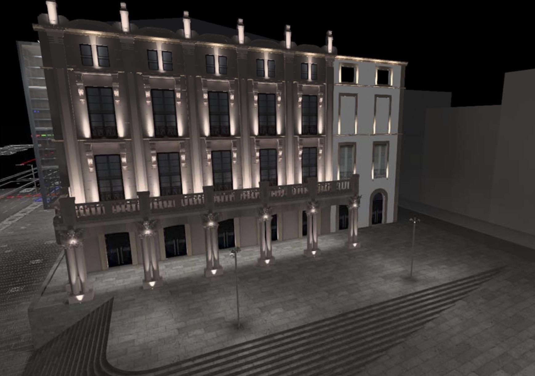 Uno de los elementos a los que se prestará especial atención es la iluminación, tanto viaria como ornamental. Parte de esta última se integrará en la fachada del teatro, mientras que en el caso de la puerta del Dique, Correos y la Casa Romero se instalarán proyectores que enfocarán las diferentes fachadas. En todos los casos será de tipo LED.