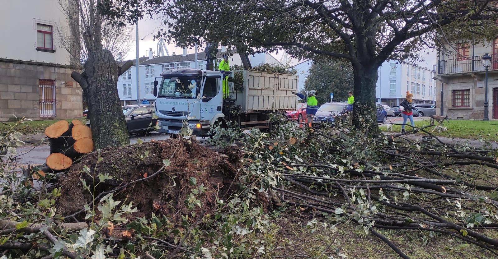 La intensidad del viento rompió una rama de uno de los tilos americanos de la plaza de Armas, del Cantón y las Angustias y volcó ejemplares en la calle Ánimas y Fontelonga