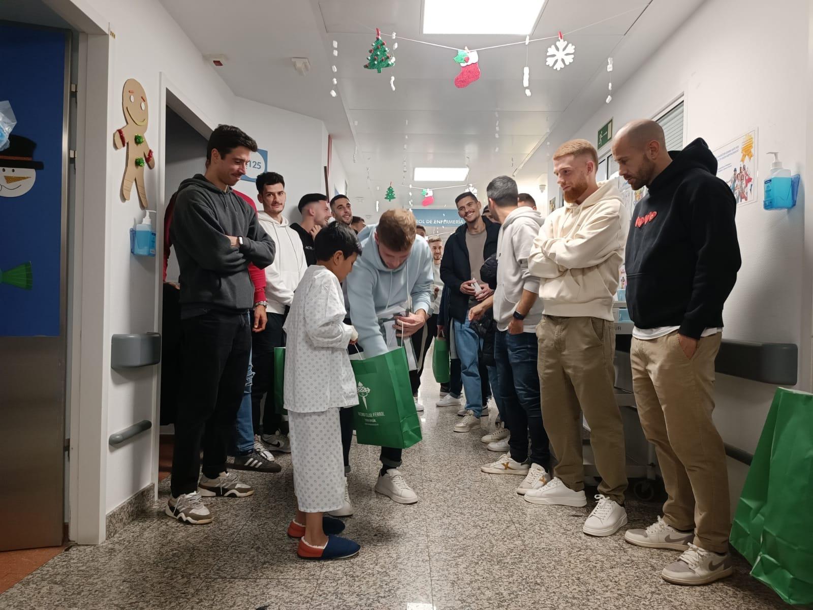 Los jugadores del Racing Club Ferrol acudieron en el día de hoy martes, 19 de diciembre, a la planta de Pediatría del Complejo Hospitalario Universitario de Ferrol (CHUF) para compartir su tiempo con los pequeños que estos días de Navidad están ingresados en el centro sanitario de la ciudad.
