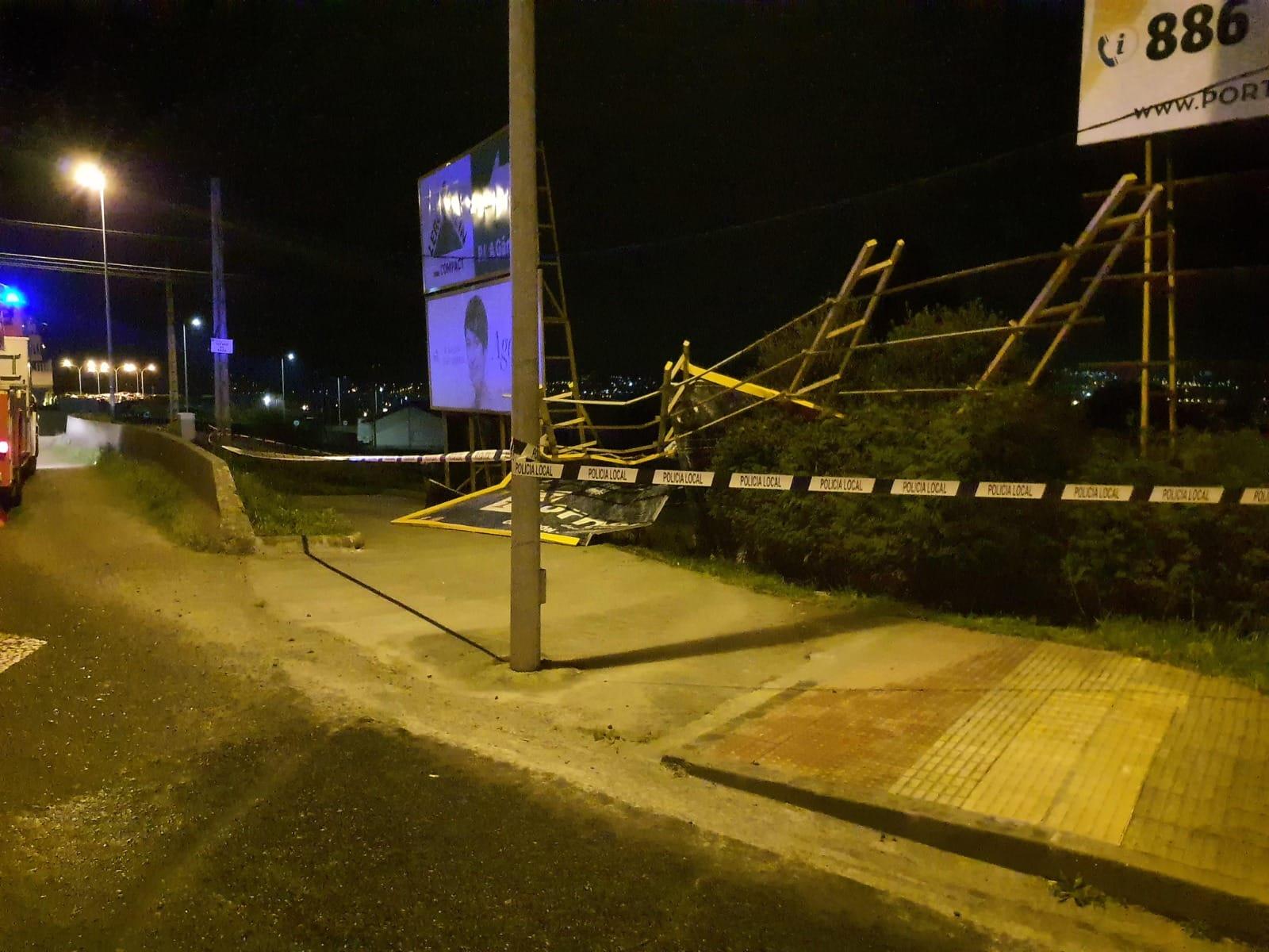La llegada de la borrasca ‘Karlotta’ a Ferrol, esta pasada noche, ya ha dejado varias incidencias en la ciudad. Una de las primeras sucedía pasadas las cinco de la mañana, cuando el fuerte viento tiró un cartel publicitario en una rotonda de la carretera de Catabois que requirió la intervención de los Bomberos de Ferrol.