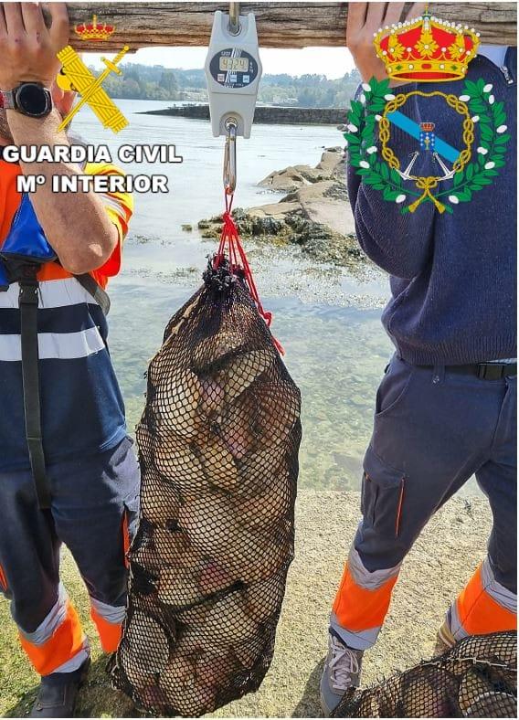 Los efectivos incautaron las unidades encontradas, que fueron sembradas por el Servicio de Gardacostas de la Xunta de Galicia en la zona, y los medios utilizados para su extracción, como botellas de buceo, traje de neopreno y sacos de red.