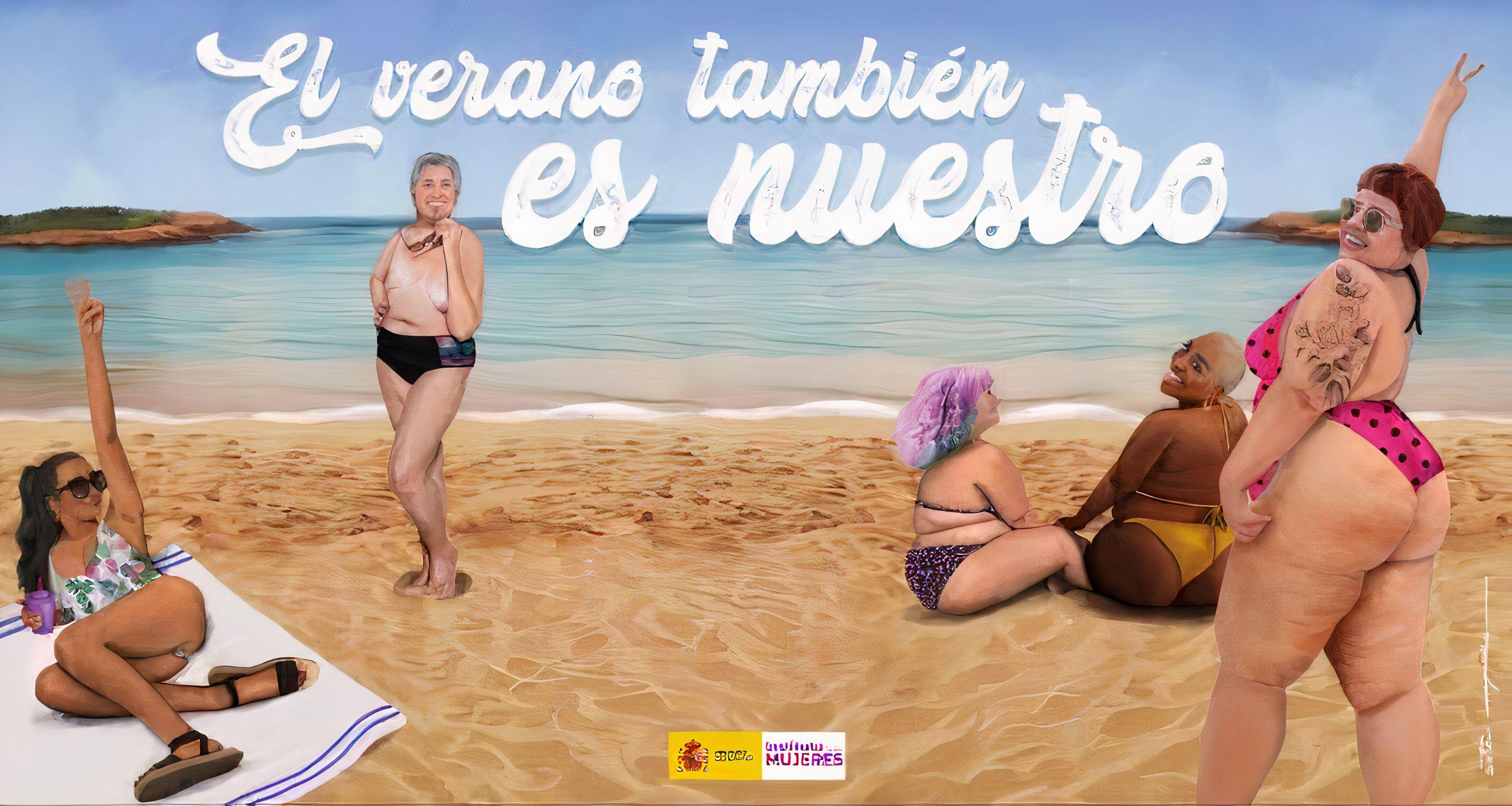 Bajo el loable propósito de concienciar socialmente sobre la belleza de la diversidad corporal, el Instituto de la Mujer, dirigido por Toni Morillas presentaba la campaña para fomentar ‘un verano sin estereotipos, en el que todos los cuerpos son válidos’. La campaña se acompañaba de una imagen con cinco mujeres de diferentes razas, tallas y edades en una playa realizado por la mencionada ilustradora ‘especializada’, según su biografía, en ‘combatir la gordofobia y reivindicar la diversidad corporal a través del arte’. Horas después de su presentación, las redes sociales comenzaron a echar fuego cuando Nyome Nicholas-Williams, una reconocida modelo de tallas grandes publicaba en su perfil de Instagram: ‘El Gobierno español ha utilizado mi imagen sin permiso’. Tras ella y ya convertido en epicentro de la polémica, la modelo Sian Lord denunciaba que su imagen también ha sido utilizada en la campaña del Ministerio y que no solamente la usurparon sin los correspondientes permisos, sino que además editaron su cuerpo para añadirle vello corporal que no tiene y añadir una pierna de la que carece, ya que la modelo usa una prótesis en su extremidad izquierda. Por si aún no estás suficientemente escandalizado /-a, además de utilizar estas fotografías sin derecho de autor, la ilustradora también utilizó para el slogan de la campaña una tipografía sin la correspondiente licencia.