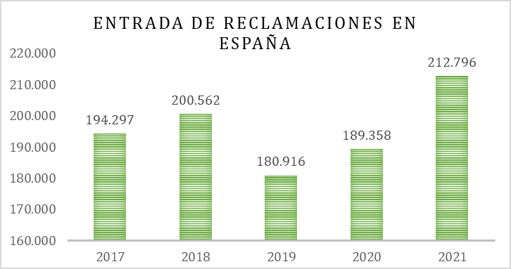 Según su última memoria publicada en el año 2021 se ha producido un incremento en el número de reclamaciones presentadas, hasta un total de 212.796, lo que supone un incremento del 12,38% con respecto a las presentadas en 2020.