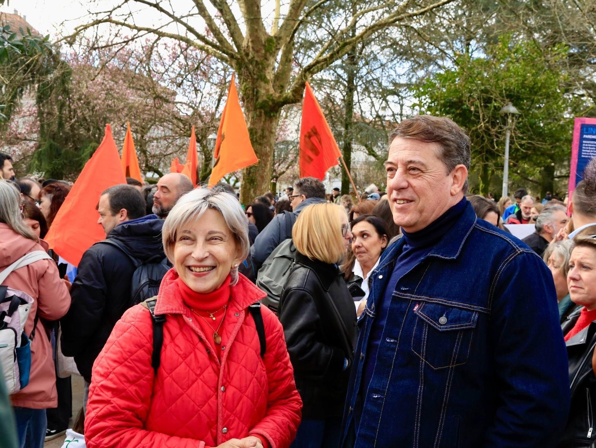 El secretario xeral del PSdeG, José Ramón Gómez Besteiro, ha participado también en la manifestación convocada por Queremos Galego en defensa del idioma y ha pedido al presidente de la Xunta que "escuche el mensaje claro" de los gallegos y ha reivindicado que "sin lengua no hay país".