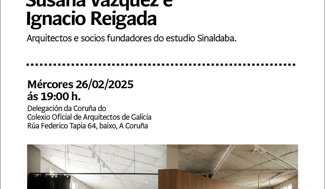 El Colexio Oficial de Arquitectos de Galicia celebra la conferencia 'Do marmurio ao berro', con Susana Vázquez e Ignacio Reigada, arquitectos y socio fundadores del estudio Sinaldaba. El evento tendrá lugar el próximo miércoles, 26 de marzo, a las 19:00 horas, en la sede del COAG (Rúa Federico Tapia, 64, bajo).