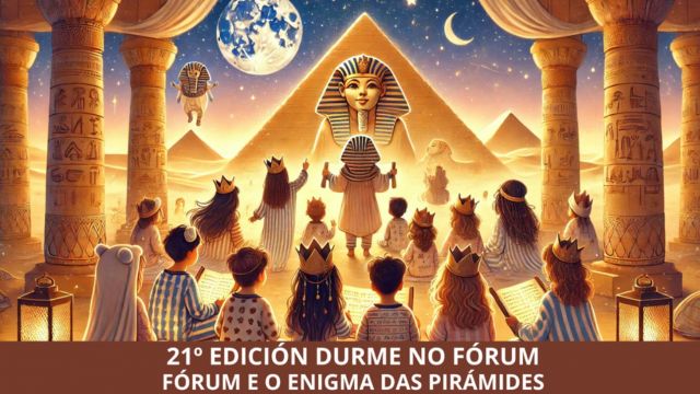 - sta noite, o Fórum convértese nun escenario misterioso e cheo de aventuras. Como grandes aventureiros/as, teredes a oportunidade de viaxar no tempo e descubrir os segredos dun dos lugares máis fascinantes e misteriosos da historia: o Exipto dos faraóns.