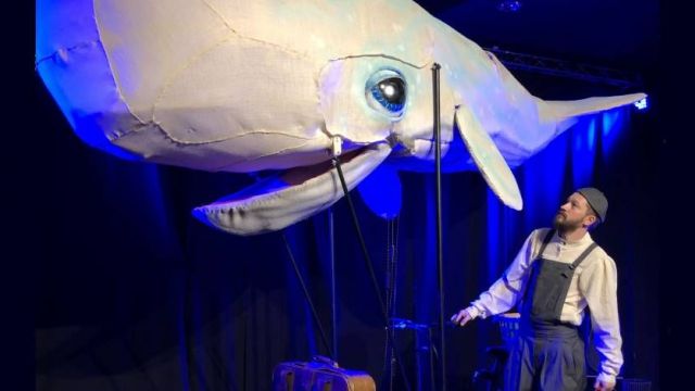 Un espectáculo de creado Pedras de Cartón a partir da afamada novela de Herman Melville que xoga coa figura do gran cachalote protagonista da novela, un monicreque de tres metros creado polo artista Iker Pérez.