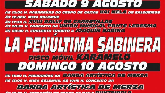 - 20:30h: Concierto de la Unión Musical Ponte Ledesma
