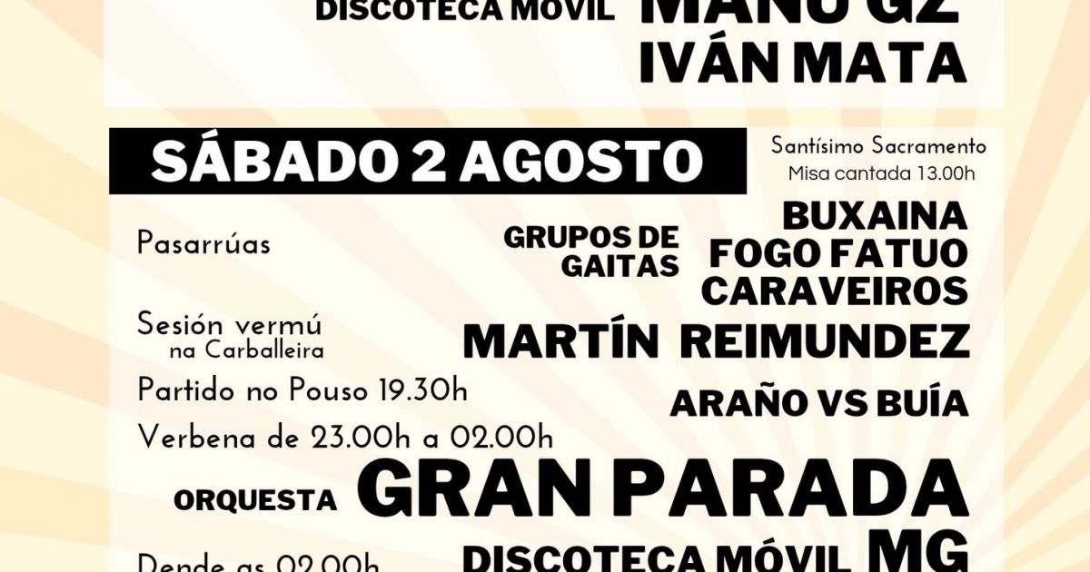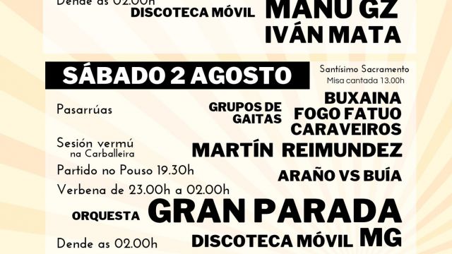 Las tradicionales fiestas de Araño regresan este verano con tres días repletos de música, pasacalles, gastronomía, actividades infantiles y mucha diversión. Un evento para todos los públicos que celebra la devoción a la Virxe do Carme, al Santísimo Sacramento y a la Virxe dos Milagros.