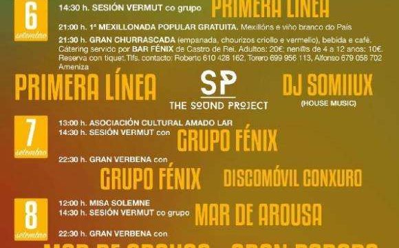 - 12:00 h – Misa solemne, procesión y concierto con la Asociación Cultural O Compás do Río Ouro