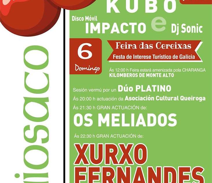 La localidad de Paiosaco celebra el primer fin de semana de julio una nueva edición de su popular Feira das Cereixas, declarada Fiesta de Interés Turístico de Galicia. El evento, que combina música, tradición y producto local, contará con una variada programación que incluye conciertos, verbenas, actuaciones culturales y un esperado final con fuegos artificiales.